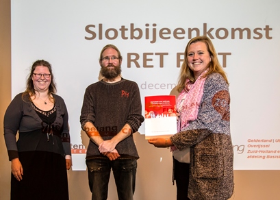 Groot formaat foto van de aanbieding aan Carmen Verdoold, manager Inkoopstrategie Zilveren Kruis