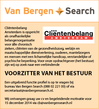 Bestuursvoorzitter Theo Veltman treedt per 1 januari 2015 af. Tineke Stricker is zolang waarnemend voorzitter. Morgen verschijnt in Het Parool onderstaande advertentie voor de werving van een nieuwe voorzitter. De werving loopt via Van Bergen Search, gespecialiseerd in de gezondheidszorg, welzijn, onderwijs, openbaar bestuur en de maatschappelijke- en zakelijke dienstverlening.